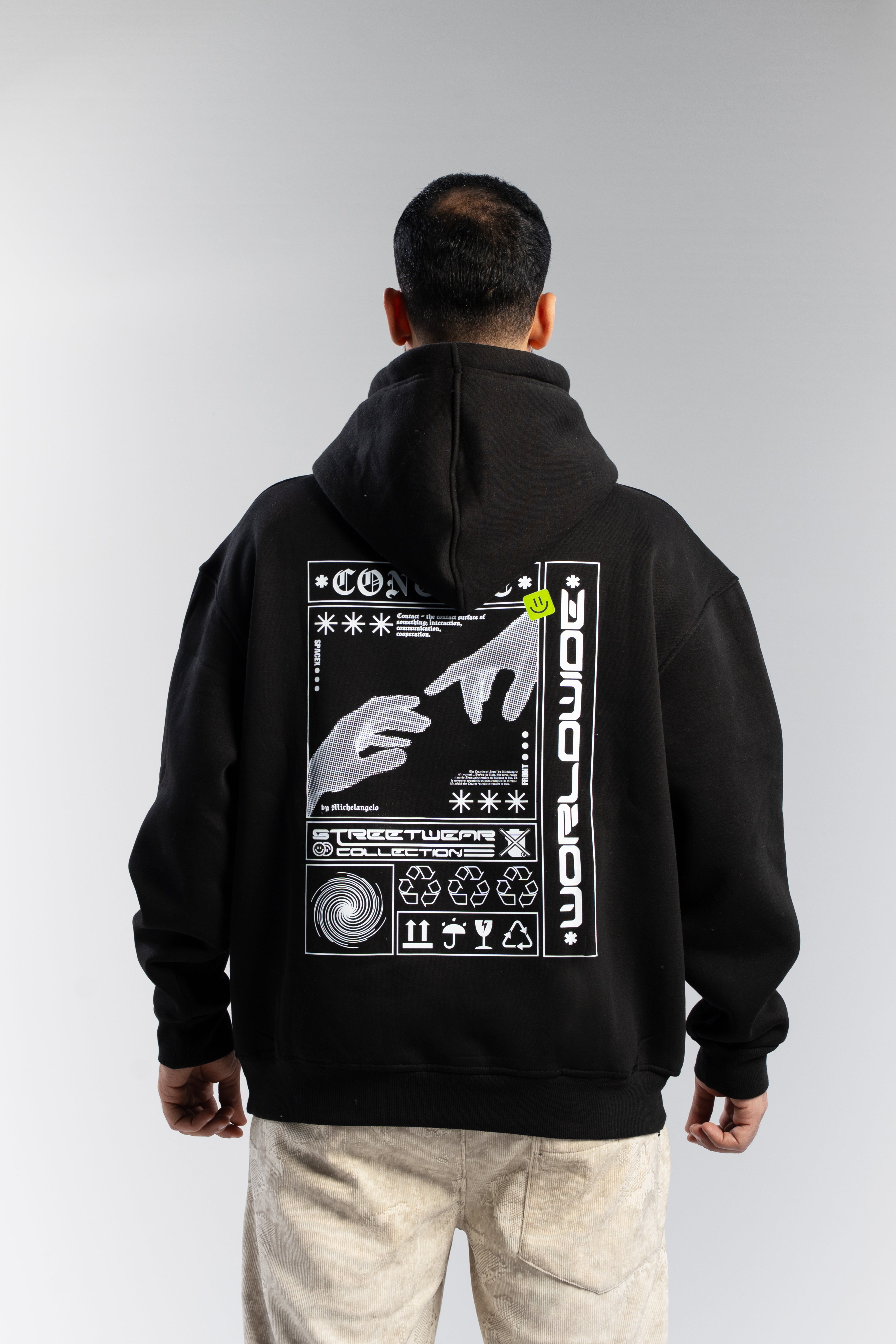 Details: Oversize Fit Hoodie Print on Chest and Back 100% Melton Cotton 320 GSM Male models are 179 cm wearing size L...