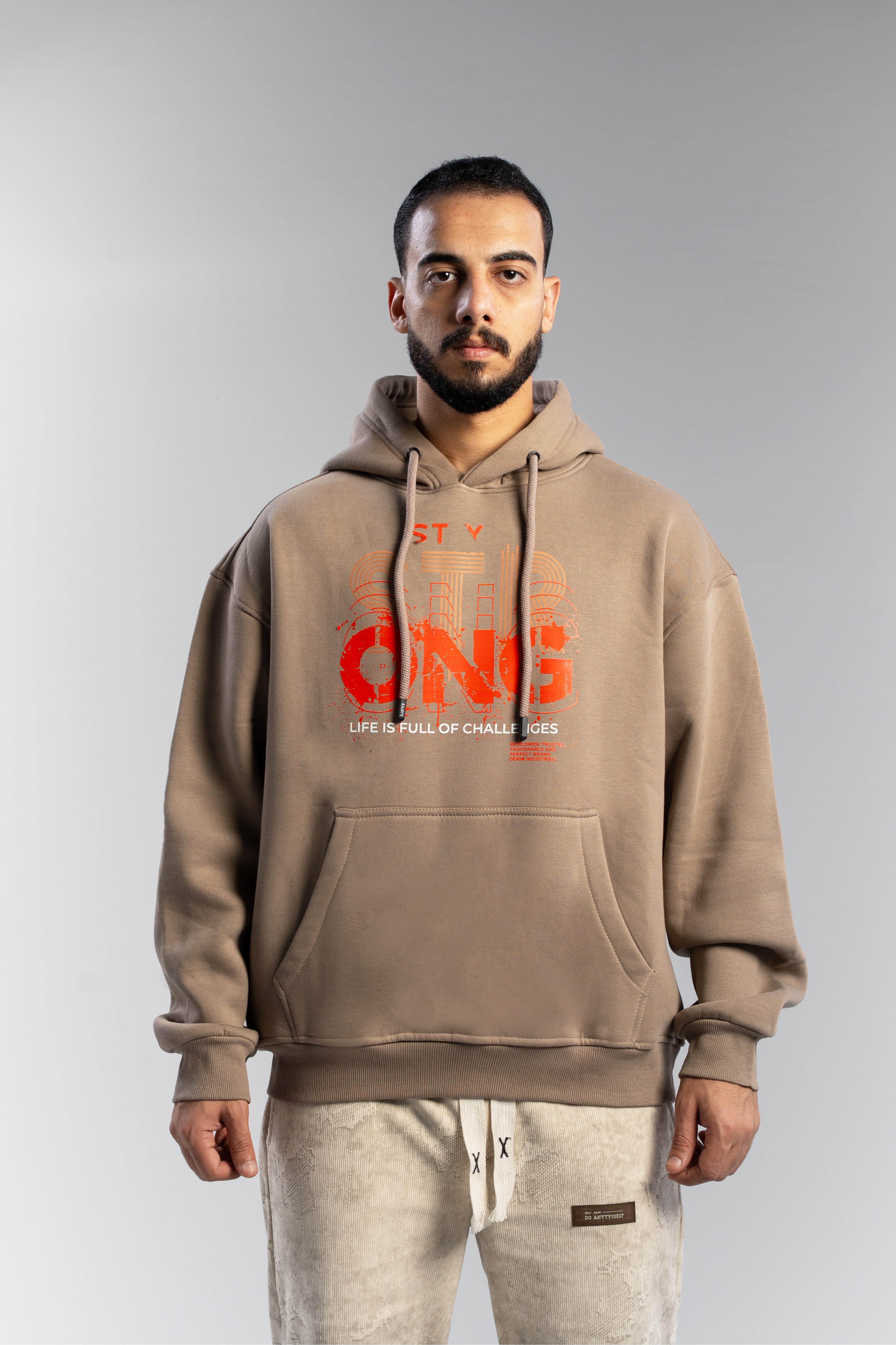 Details: Oversize Fit Hoodie Print on Chest, Back 100% Melton Cotton 320 GSM Male models are 179 cm wearing size L
