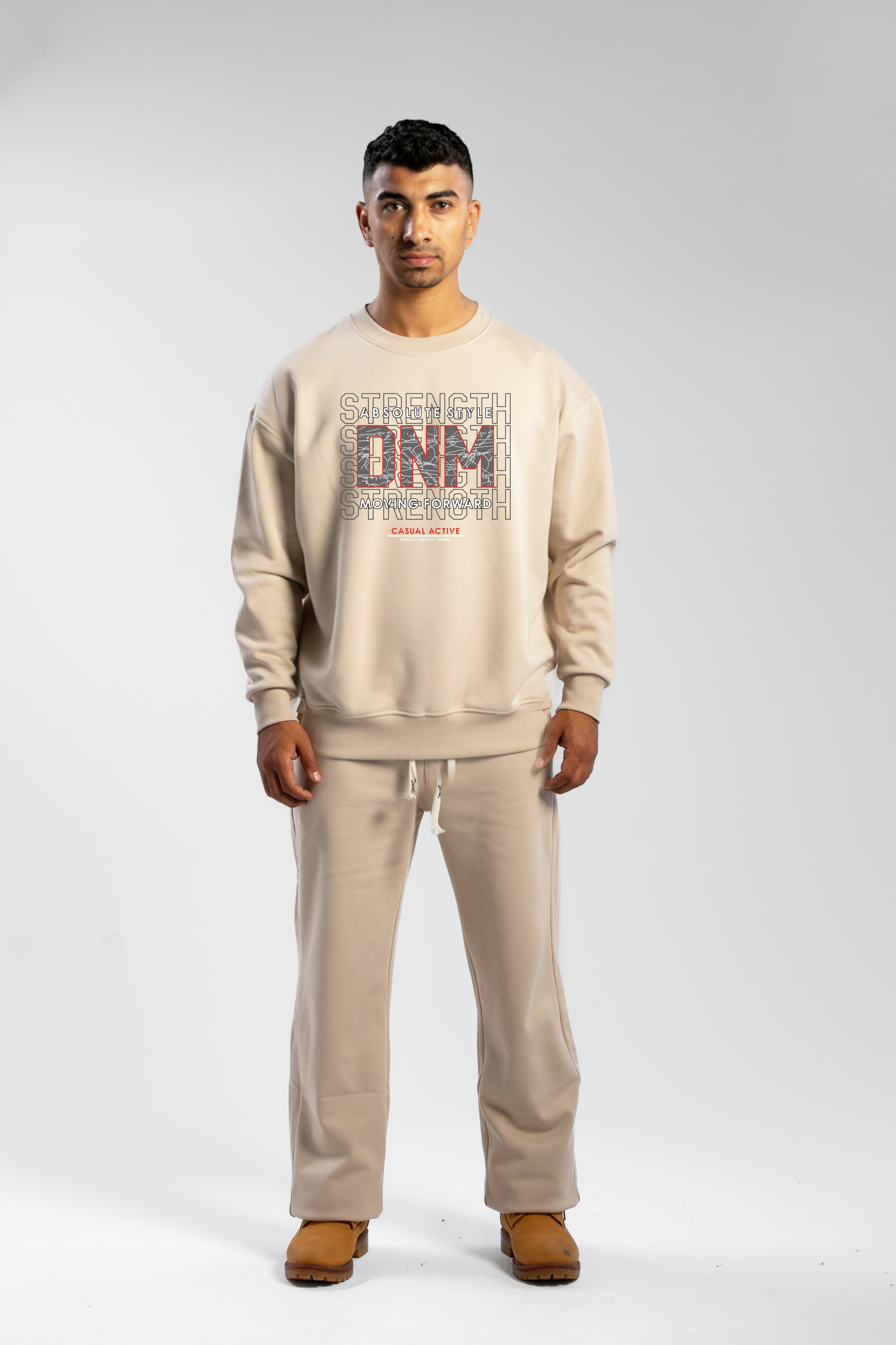 Details: Oversize Fit Sweatshirt and Relaxed Sweatpants Print on Chest 100% Melton Cotton 320 GSM Male models are 179 cm wearing...